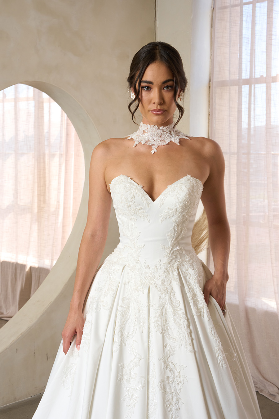 Paloma Blanca embodies timeless sophistication. Each gown is a study in refined beauty—clean, elegant silhouettes enhanced by sumptuous fabrics and intricate handwork that can only come from true artisans. Meticulously crafted in our Toronto atelier by skilled hands that understand the weight of a bride’s moment, these gowns are designed for the woman who recognizes that true elegance never fades. Trusted by discerning brides across continents, Paloma Blanca creates confidence wrapped in grace.